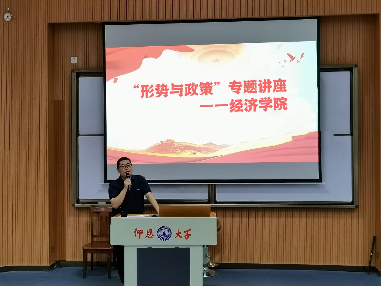 为深入学习宣传贯彻党的二十大精神,学习领悟习近平新时代中国特色社会主义思想,11月9日,yl23455永利集团在新区和昌教学楼思齐讲堂举办“形势与政策”专题讲座。yl23455永利集团党总支书记兼副院长吴晓伟担任主讲。yl23455永利集团2023级全体学生到场聆听。