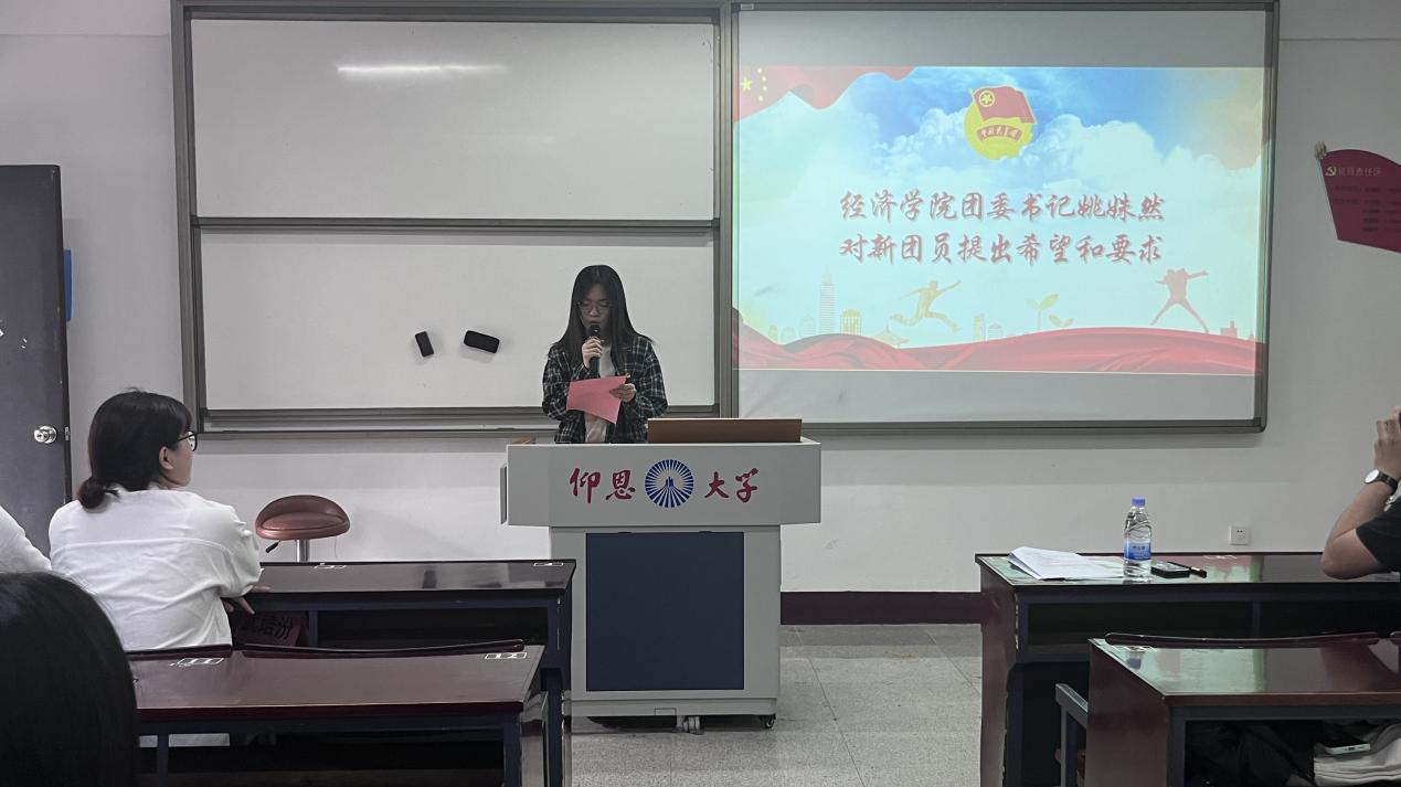 为加强我院共青团队伍建设,贯彻社会主义核心价值观,增强青少年进取意识,迎接新的一批团员入团,yl23455永利集团团委于2024年5月13日下午在仰恩楼举行了新团员入团仪式,由校团委唐成老师,yl23455永利集团团委书记姚姝然老师,以及经济系学生第一党支部书记武培汾老师作为教师代表出席本次入团仪式。