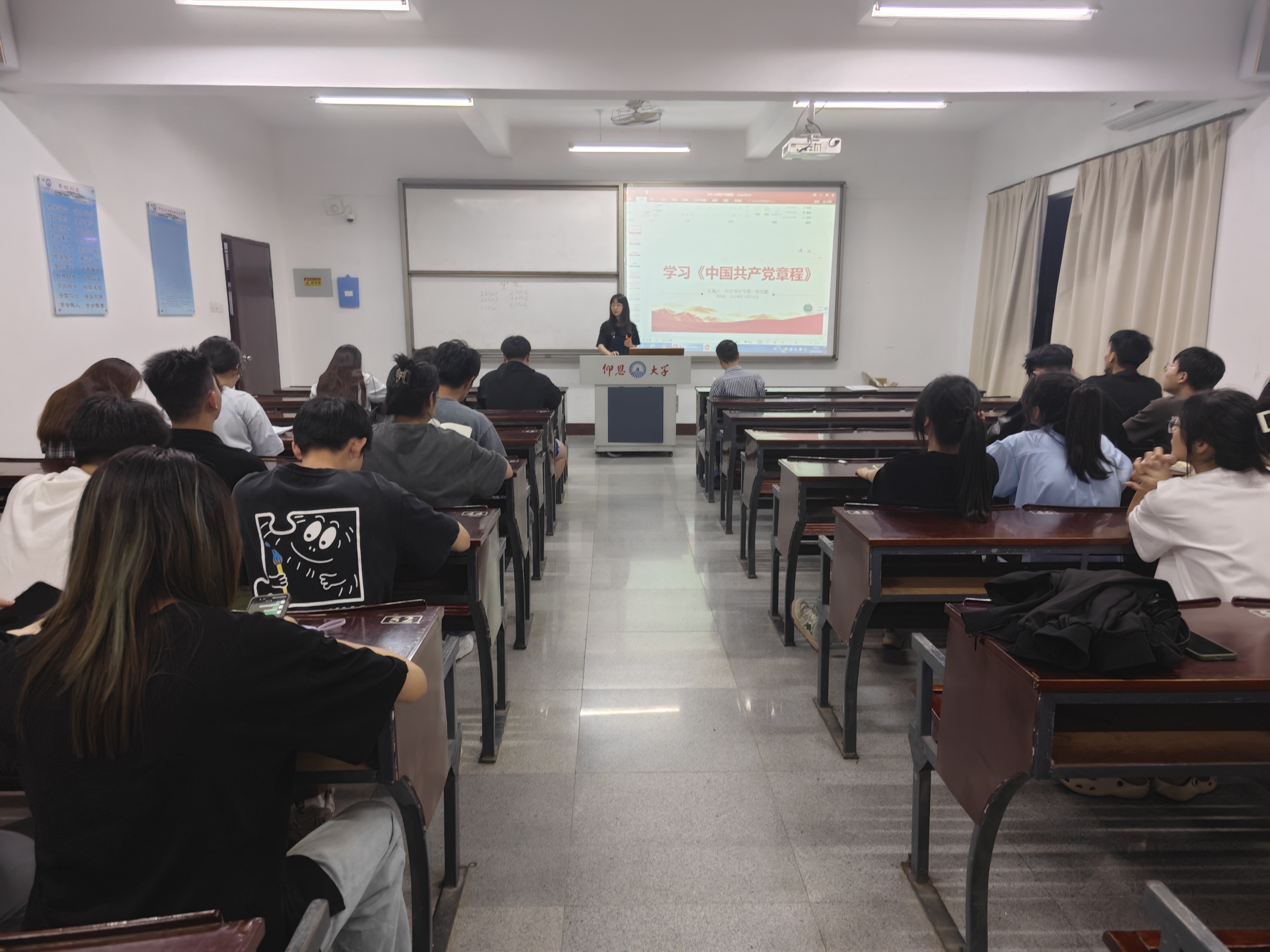 为进一步将党纪学习教育落实落细,引导广大党员树立规矩意识和服务意识。2024年5月16日晚,yl23455永利集团经济系学生第一党支部在新区仰恩楼C5-305组织开展了学习《中国共产党章程》为主题的学习会。经济系学生第一党支部书记武培汾老师、组织委员仲平老师、宣传委员杨越老师和支部全体成员参加此次活动。