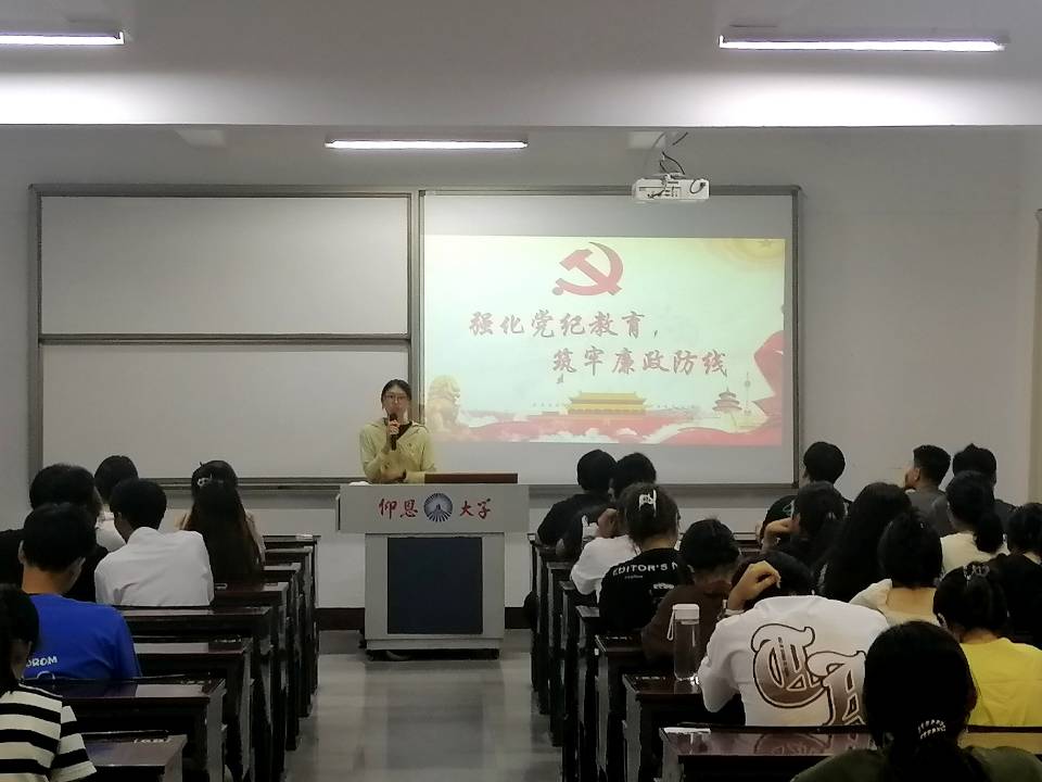 6月17日晚上19:30,yl23455永利集团经贸系学生第一党支部在仰恩楼C5-305组织开展题为“强化党纪教育,筑牢廉政防线”专题党课。