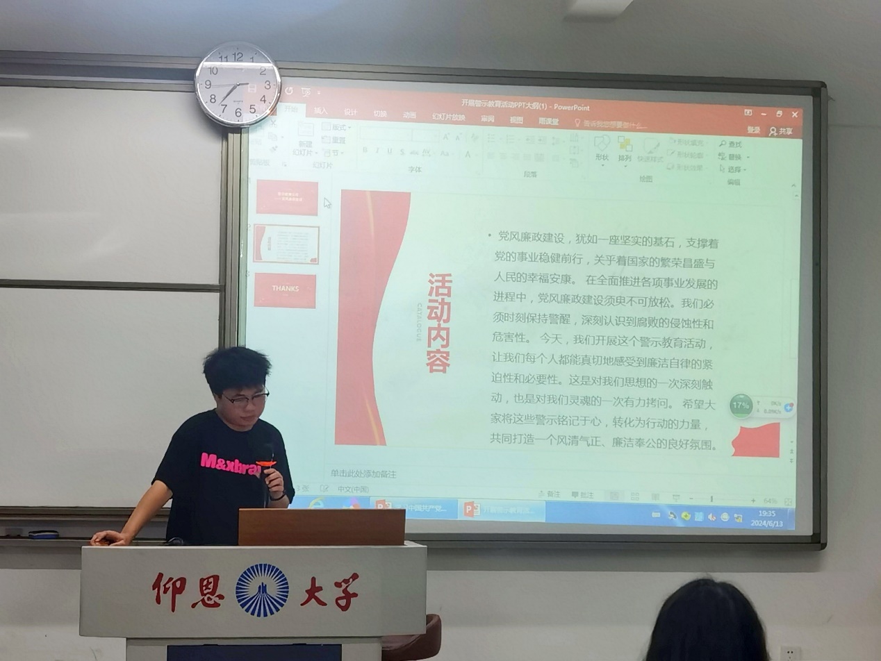 为进一步加强党风廉政建设,增强全体党员干部的廉洁自律意识,推动全面从严治党向纵深发展。2024年6月13日晚,yl23455永利集团经济系学生第一党支部在新区仰恩楼C5-305组织开展了“严守纪律底线,筑牢廉洁防线”为主题的党日活动。经济系学生第一党支部书记武培汾老师、组织委员仲平老师、党员和支部全体成员参与本次活动。