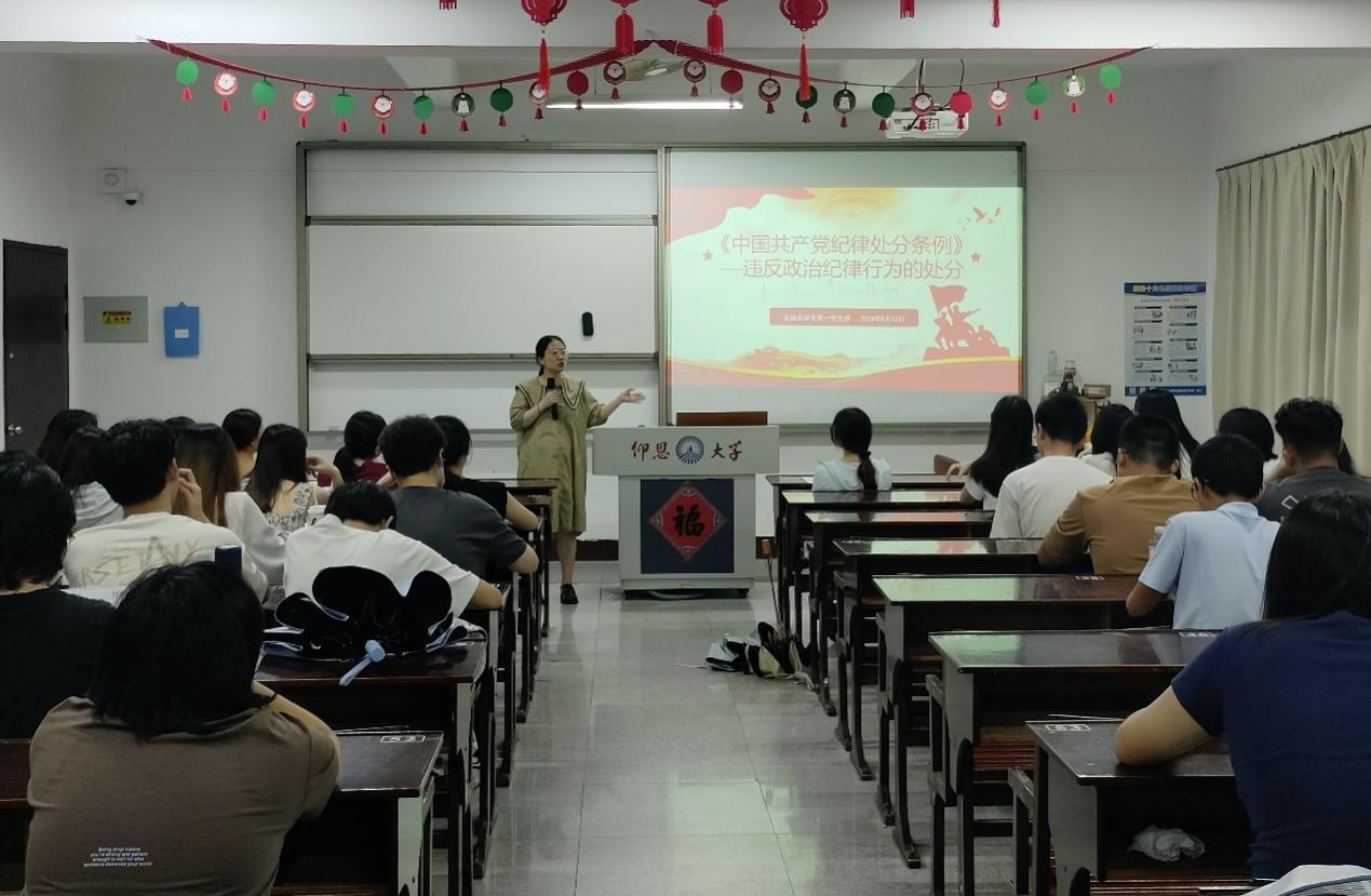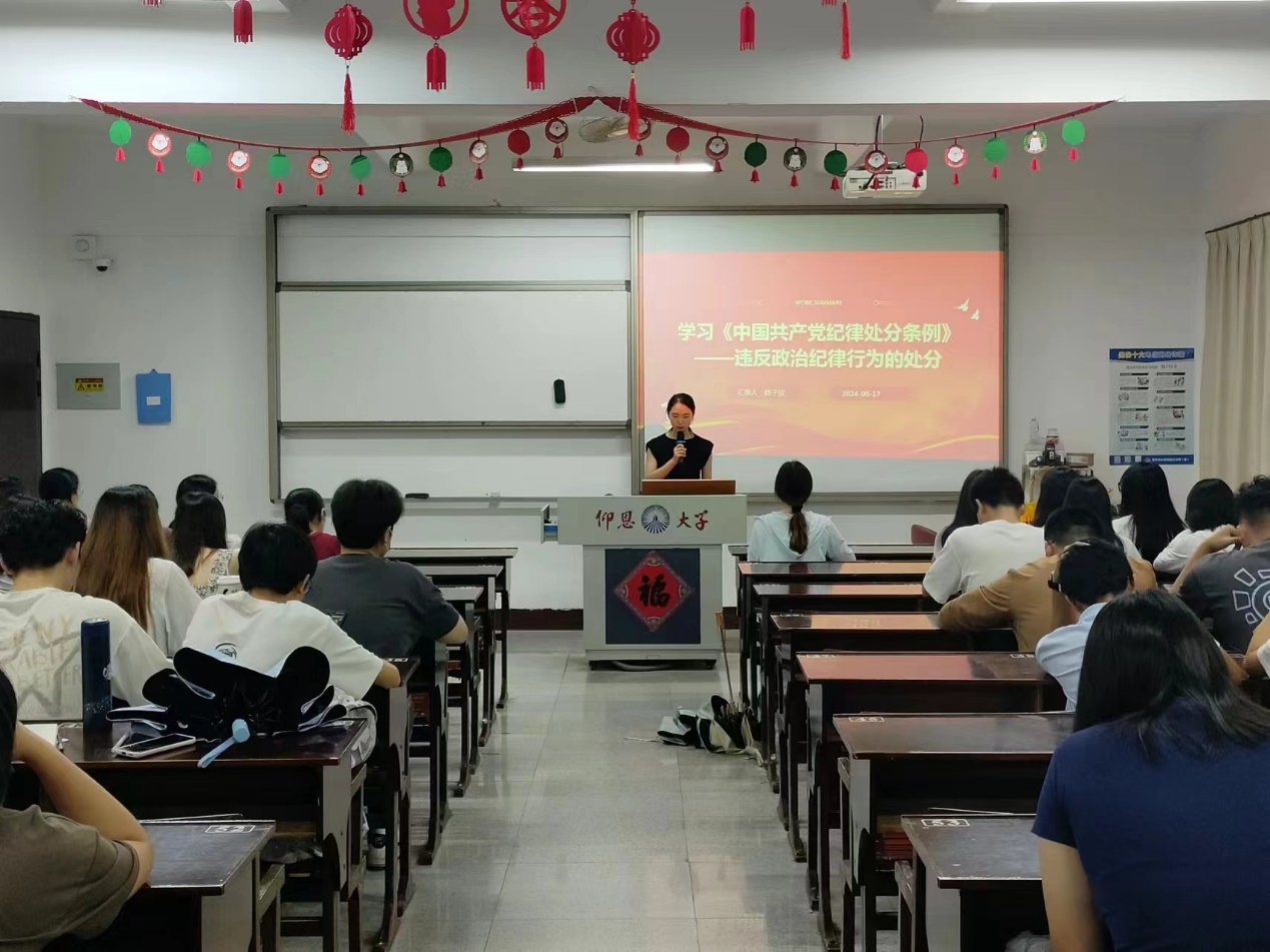 为扎实推进党纪学习教育,引导全体党员干部强化纪律意识,严守纪律规矩,2024年6月17日晚上,yl23455永利集团金融系学生第一党支部在仰恩楼C2-305组织开展“《中国共产党纪律处分条例 》第六章”主题学习研讨会,针对违反政治纪律行为的处分。支部书记何丽玲老师、支部全体党员及各班入党积极分子参加了这次学习会。