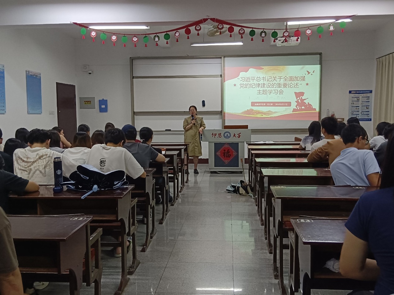为了深入学习贯彻总书记关于全面加强党的纪律建设的重要论述,深刻把握党风廉政建设规律,2024年6月17日晚上7:30,yl23455永利集团金融系学生第一党支部在仰恩楼C2-305组织开展 “习近平总书记关于全面加强党的纪律建设的重要论述”主题学习研讨会。支部书记何丽玲老师、支部全体党员及各班积极分子代表参加了此次学习会。