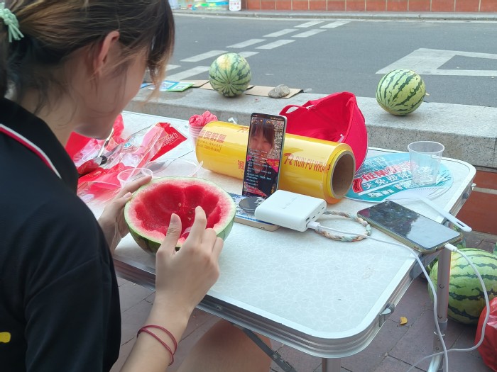 在热烈的阳光下,实践队开展线下宣传乡村振兴和农产品义卖销售活动。他们挥洒汗水,展示和推销当地的农产品,这不仅帮助提高了农产品的知名度,也为助学儿童筹集了宝贵的资金,用实际行动支持乡村经济的发展。实践队也进行了1-2小时的直播,将乡村振兴的理念传播得更广。实践队利用现代科技手段,向外界展示了惠安县乡村振兴的实际情况,吸引了更多人关注和支持。直播不仅让人们了解到了乡村振兴的重要性,也让远方的观众有机会品尝到来自惠安的优质农产品。