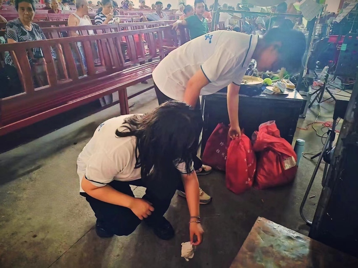 活动结束,队员们积极参与场地清扫工作,保持环境整洁美观,为活动画上圆满句号。最后,队员们与演员工作人员合影留念,留下了难忘的经历。