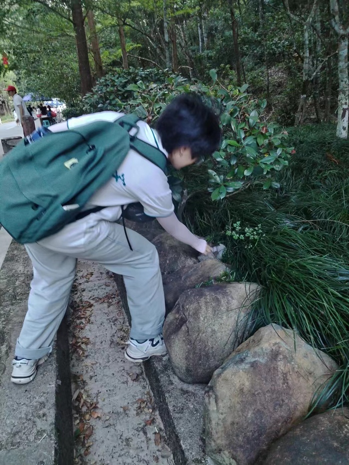 次日,队员们来到了寨下大峡谷,沿着峡谷的栈道前行,欣赏着千姿百态的丹霞山体及形态各异的岩石,,感受大自然的壮丽与神奇,学习相关地质学知识。在探险过程中,队员们还积极参与了环保活动,清理了沿途的垃圾和废弃物,为保护这片美丽的自然环境贡献了自己的力量。