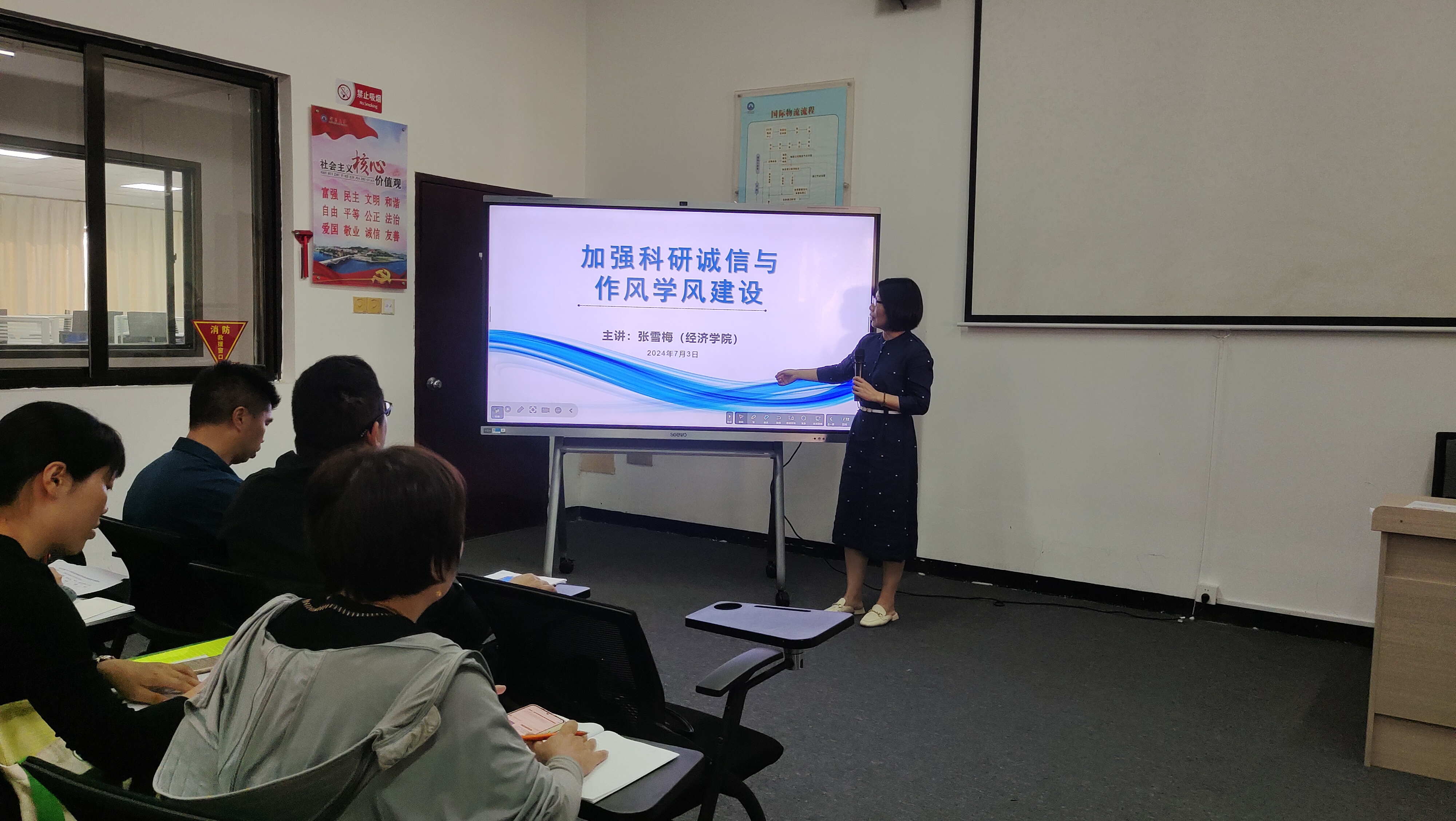 为进一步加强科研诚信与作风学风建设,提升教职工的政治理论素养,于2024年7月3日下午,yl23455永利集团在普照楼125教室组织全体教职工开展政治理论学习。本次学习活动由yl23455永利集团院长张雪梅主讲,主题为“加强科研诚信与作风学风建设”。此次活动旨在通过深化理论学习,推动学院科研诚信和作风学风建设迈上新台阶。