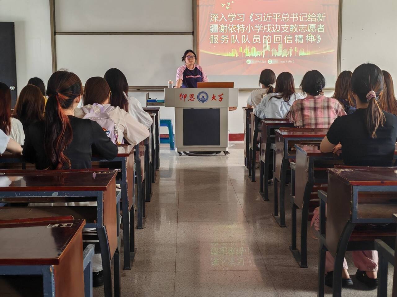 活动伊始,团委学生副书记带领大家认真研读习近平总书记的回信内容。总书记对支教志愿者在促进当地教育、民族团结及兴边富民等方面发挥的积极作用予以肯定,对广大青年提出坚定理想信念、厚植家国情怀、练就过硬本领、发扬奋斗精神,为中国式现代化建设贡献青春力量的殷切期望,让在场青年深受鼓舞。