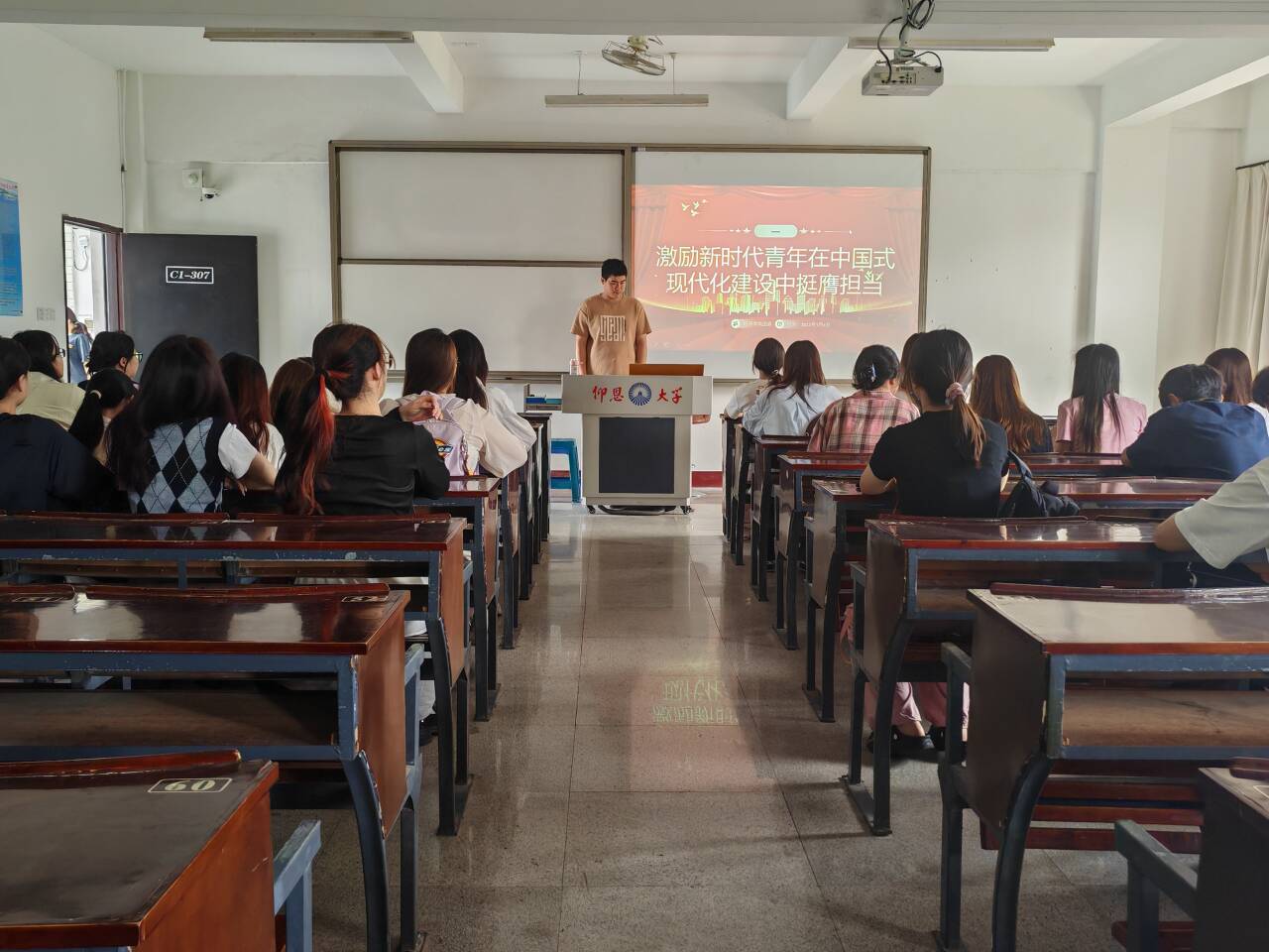 随后,同学们共同学习了《激励新时代青年在中国式现代化建设中挺膺担当》文章。大家深刻认识到,中国式现代化是强国建设、民族复兴的必由之路,青年应在其中勇当先锋队、突击队 。在交流讨论环节,同学们踊跃发言。有同学结合自身参与社会实践的经历,表示要将个人成长与国家发展紧密相连,积极投身基层服务;也有同学从专业角度出发,阐述在经济领域如何发挥专业优势,为推动高质量发展贡献力量。