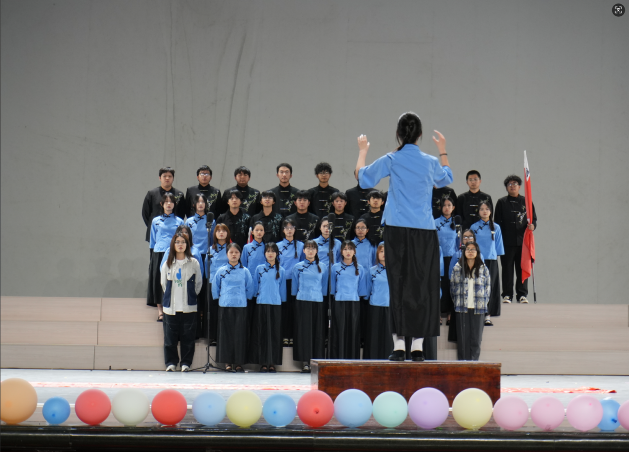 晚七时,文体中心灯光璀璨,姚姝然老师以独唱拉开序幕。这场独唱并非简单的暖场表演,而是一次对青春命题的深刻诠释。姚姝然老师用歌声为五四精神注入了新的注解。