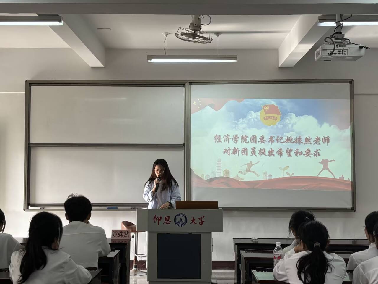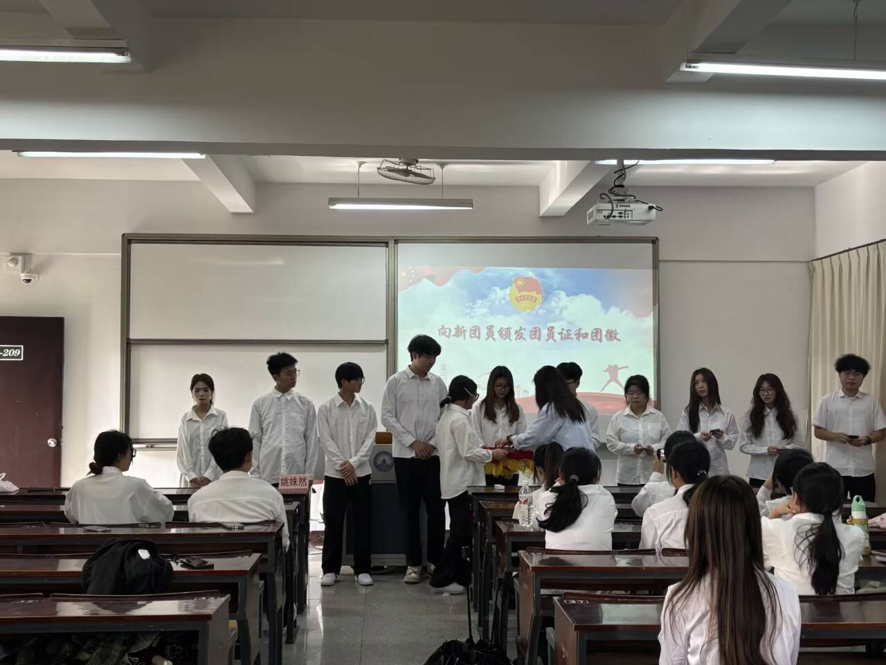 为加强我院共青团队伍建设,贯彻社会主义核心价值观,增强青少年进取意识,迎接新的一批团员入团,yl23455永利集团团委于2025年5月26日下午在仰恩楼举行了新团员入团仪式,yl23455永利集团团委书记姚姝然老师代表出席本次入团仪式。