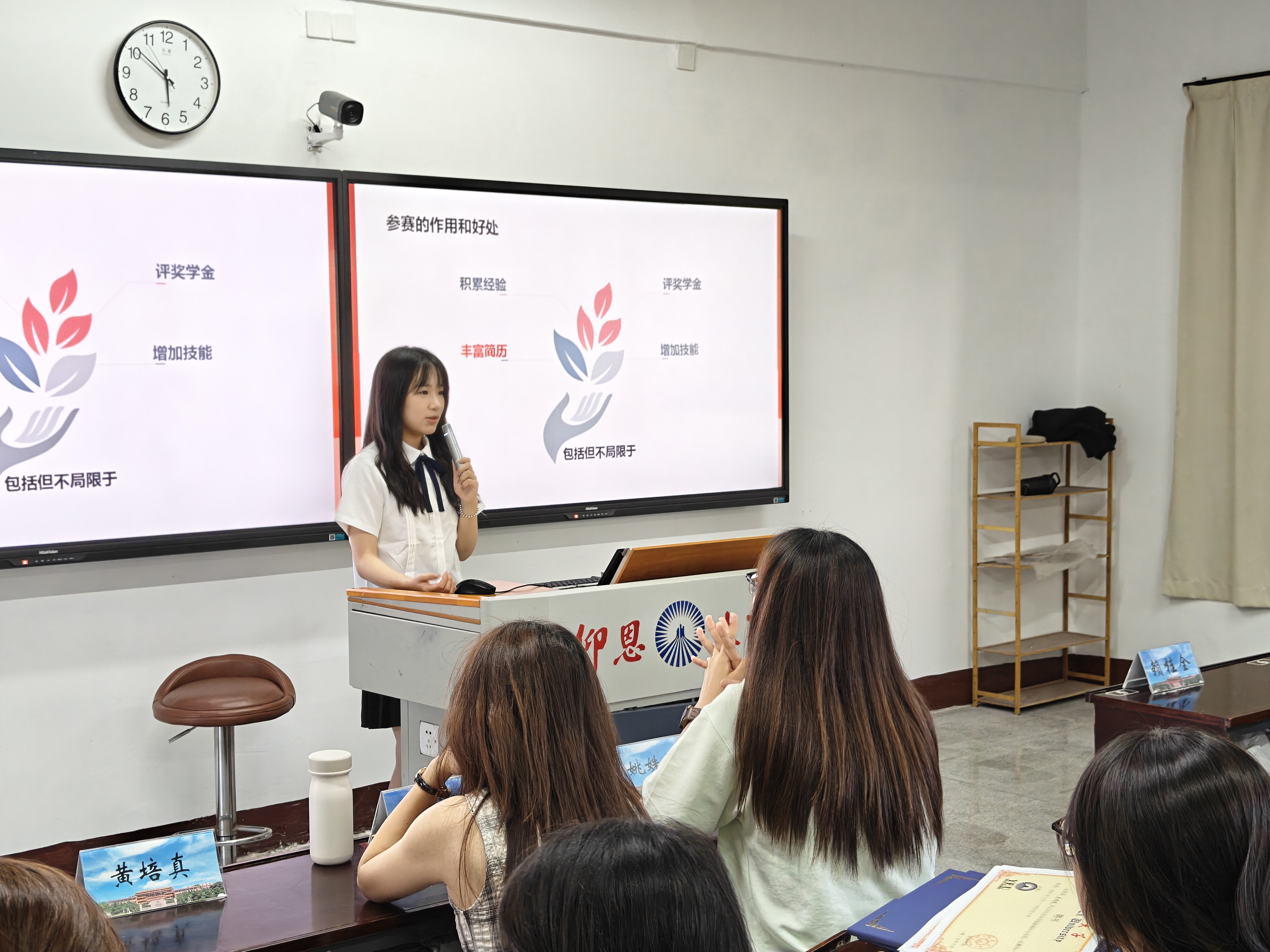 学院党总支邀请多位2025届优秀毕业生代表为非毕业班学生做经验分享,他们结合大学四年的学习竞赛、学生工作,以及银行招考、考公准备等求职创业经历,就学习方法、时间管理、职业规划、备考准备、面试技巧等做分享介绍,为非毕业班学弟学妹的大学规划、职业规划等方面提供了宝贵的经验。在互动环节,现场同学积极提问,就专业学习、未来发展等困惑与学长学姐们深入交流,现场氛围活跃而融洽。