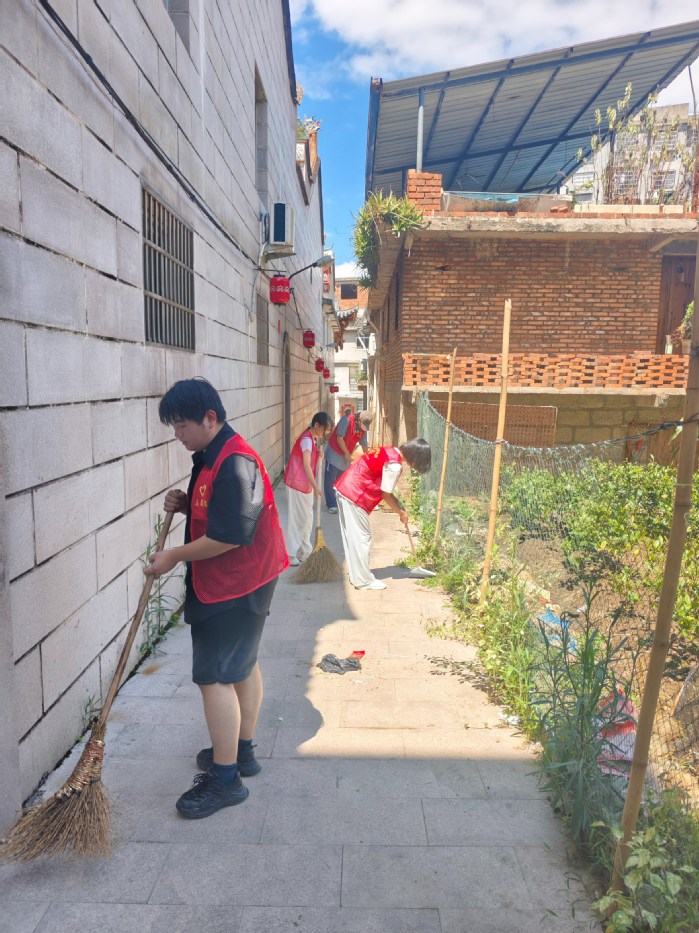 活动当天,实践队队员与社区工作人员分成三组,重点清理了社区主干道、绿化带及公共活动区域的垃圾杂物。队员们手持扫帚、垃圾夹等工具,细致清扫路面烟头、纸屑,清除草丛中的塑料废弃物,并对张贴在墙面、电线杆上的小广告进行集中铲除。尽管天气炎热,但队员们热情高涨,经过两小时的共同努力,社区环境焕然一新,赢得居民连连称赞。