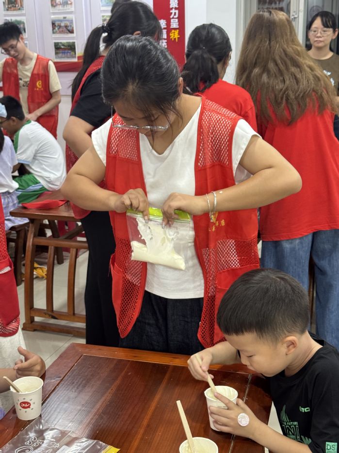 为丰富暑期实践内容,让小朋友们在趣味互动中提升英语能力,7月18日,“扬厦帆志”暑期实践队组织了一场别开生面的“趣味英语冰淇淋制作”活动,将语言学习与手工实践巧妙结合。