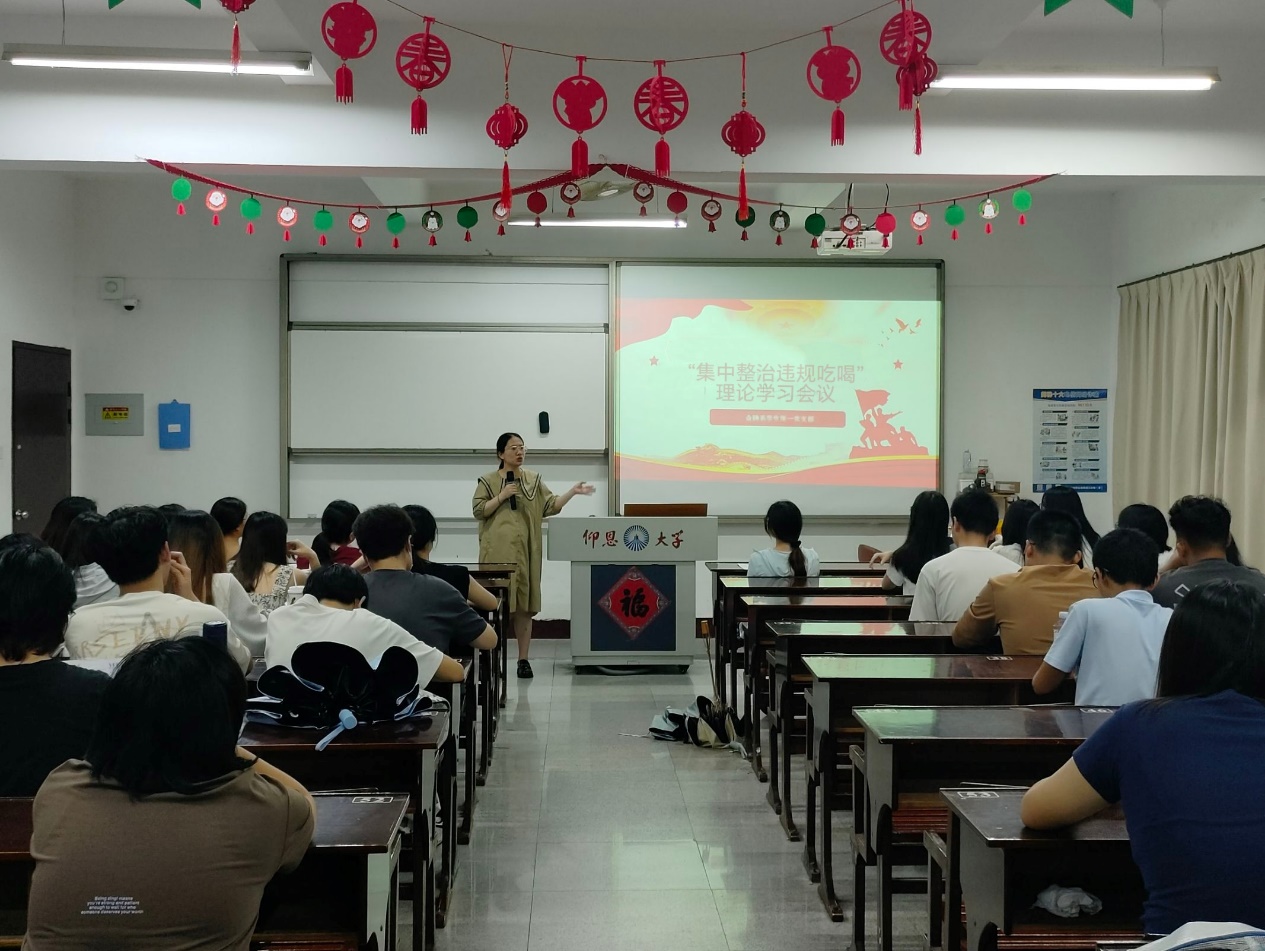 为深入贯彻落实中央八项规定精神,进一步加强党风廉政建设,强化党员的纪律意识和规矩意识,2025年6月20日,yl23455永利集团金融系学生第一党支部在仰恩楼A1-107组织开展“集中整治违规吃喝”理论学习会议。此次会议由党支部书记何丽玲主持,支部全体党员和各班入党积极分子参加了理论学习会议。
