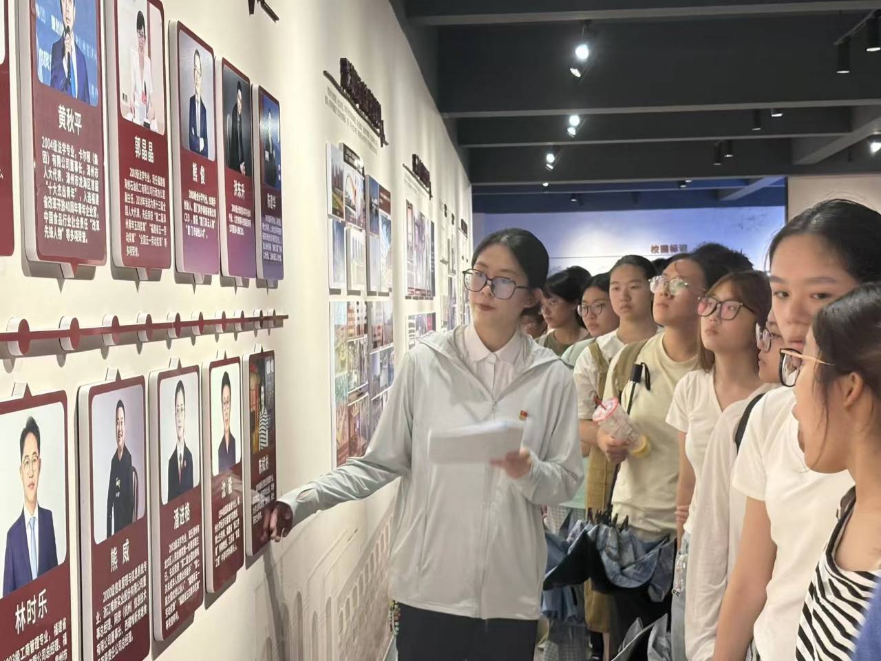 步入校史馆,解说员以时间为脉络,围绕校园标识、校主吴庆星先生办学历程、学校改革发展成就三大板块展开讲解。从校徽中仙公山象征的“旭日东升”寓意,到校训“学会做人,守信笃行;学会做事,创业有成”的深刻内涵;从吴庆星先生秉承父母遗愿、开山建校的艰辛,到学校从捐资公办转为独资私办,成为新中国第一所具备本科办学资格民办大学的跨越;从重视爱国主义教育、推行体育教学四年不断线的特色举措,到近年来在应用型人才培养、校企合作、国防教育等方面的亮眼成绩,解说员通过图文资料、历史故事,让新生们全面认识了学校30余年的奋斗与辉煌,尤其对学校“五育并举”的办学理念和服务区域经济发展的定位有了更清晰的认知。