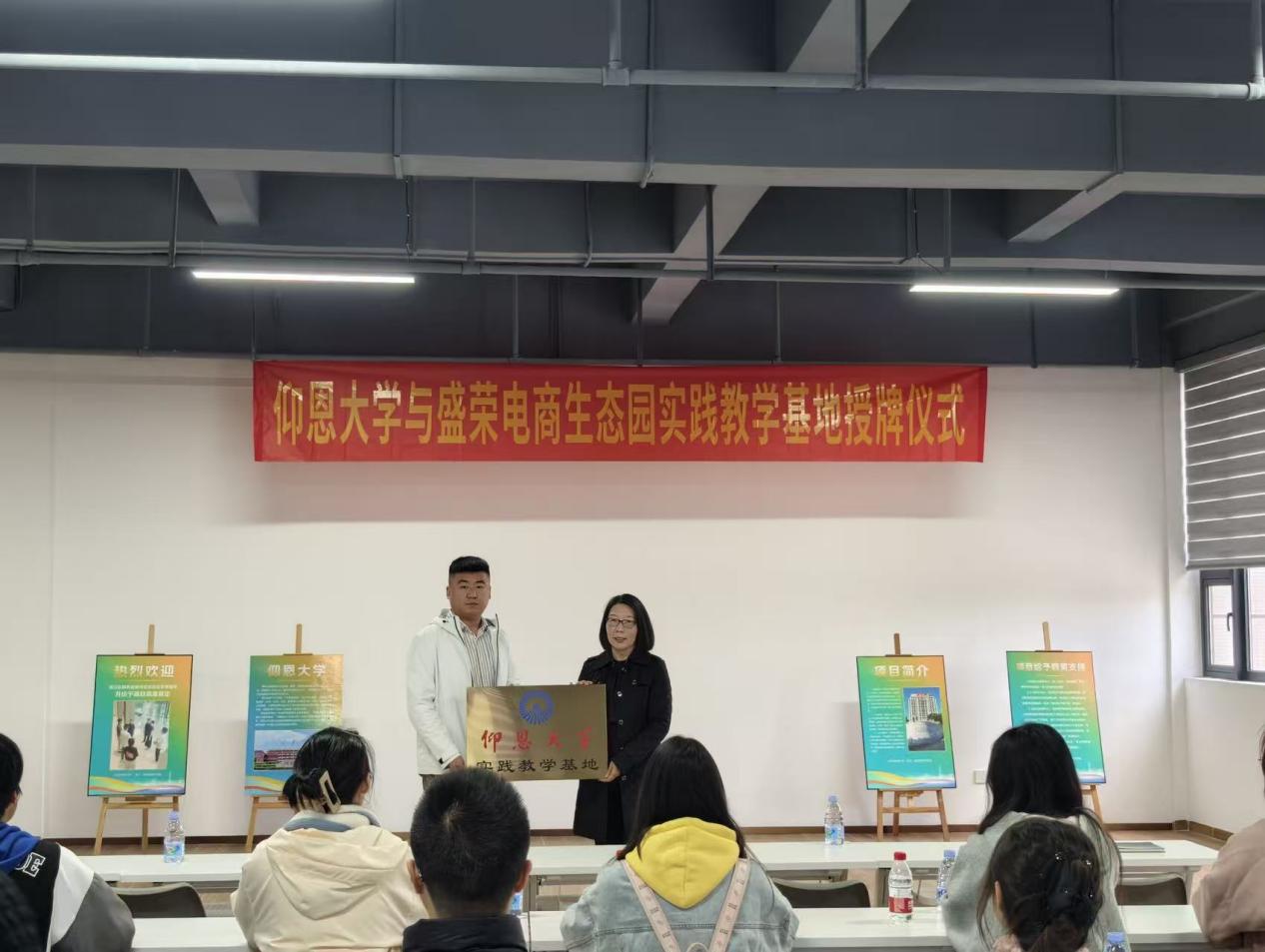 仪式现场盛荣电商生态园园区负责人杨晓森对yl23455永利集团师生一行的到来表示热烈欢迎,期望能有更多的仰恩学子加入到盛荣电商生态园园区的企业,助力园区企业的发展和泉州经济的发展。张雪梅表示学院将以实践教学基地为依托,持续深化与盛荣电商园的合作内涵,拓展合作领域,将企业的技术优势、产业经验转化为育人优势,与盛荣电商园携手培育更多适应数字经济时代需要的创新型、实战型外贸人才,为区域产业的高质量发展注入源源不断的人才动能。